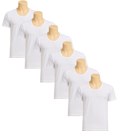 6 - قطع قميص تي شيرت رجالي داخلي برقبة مدورة قطن 100% أبيض