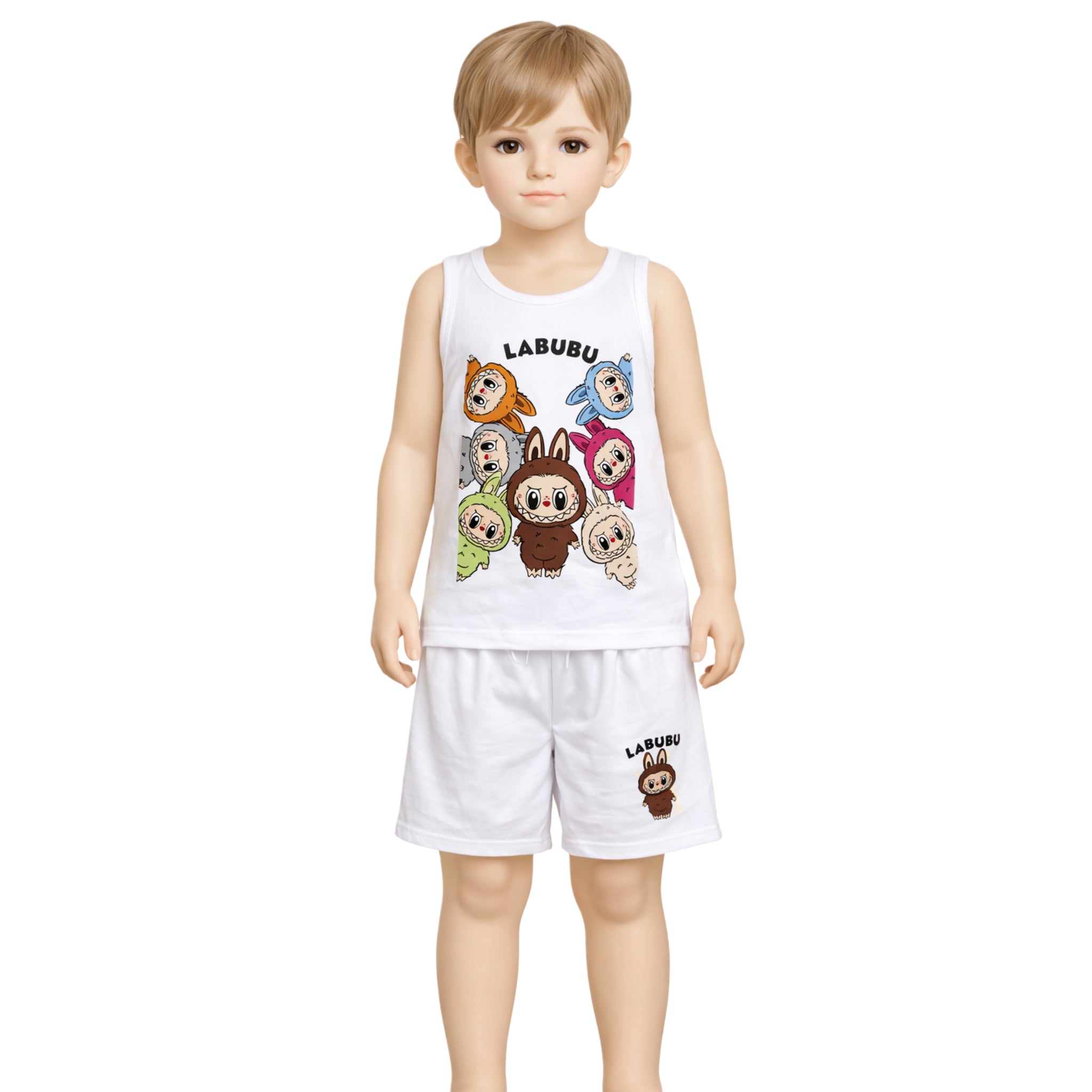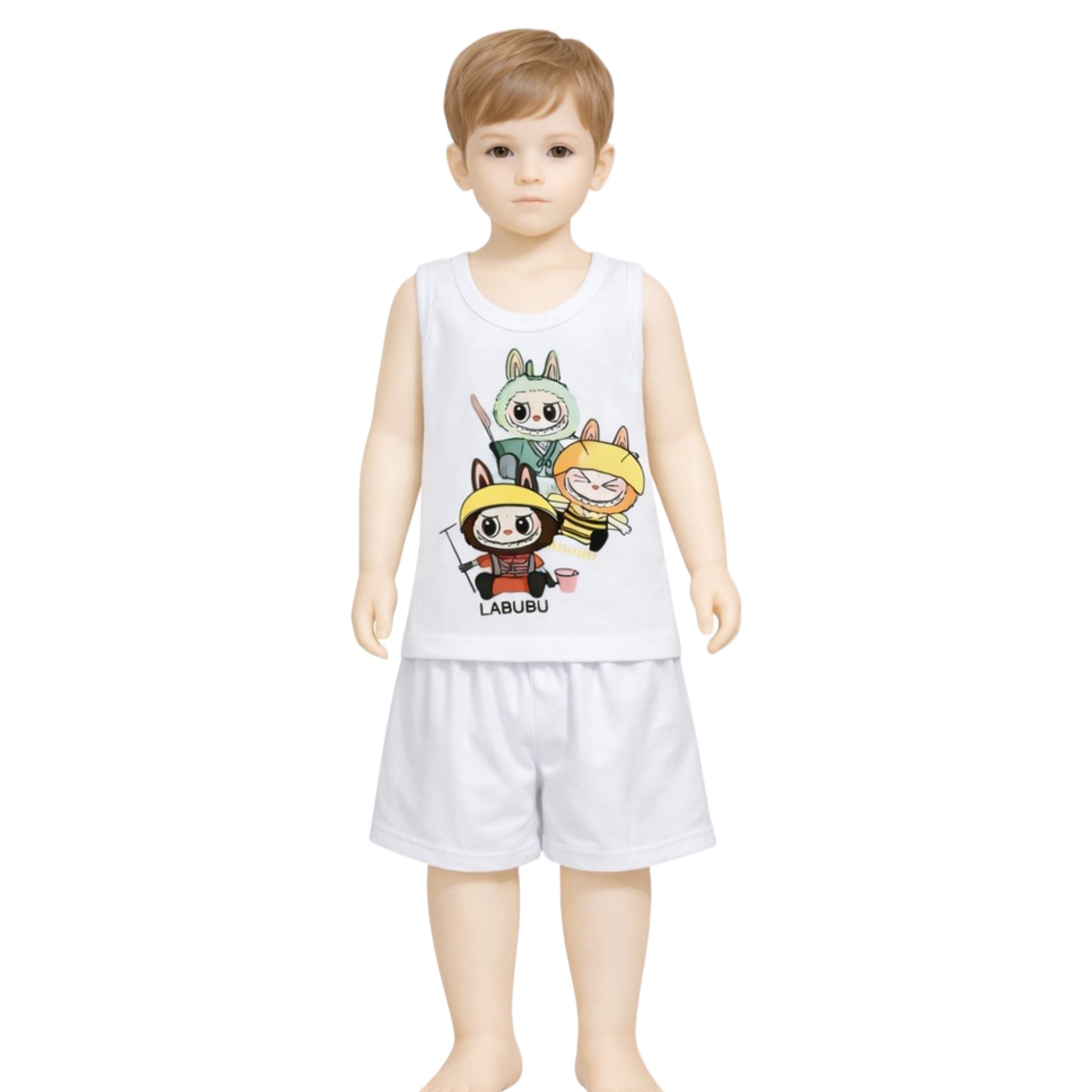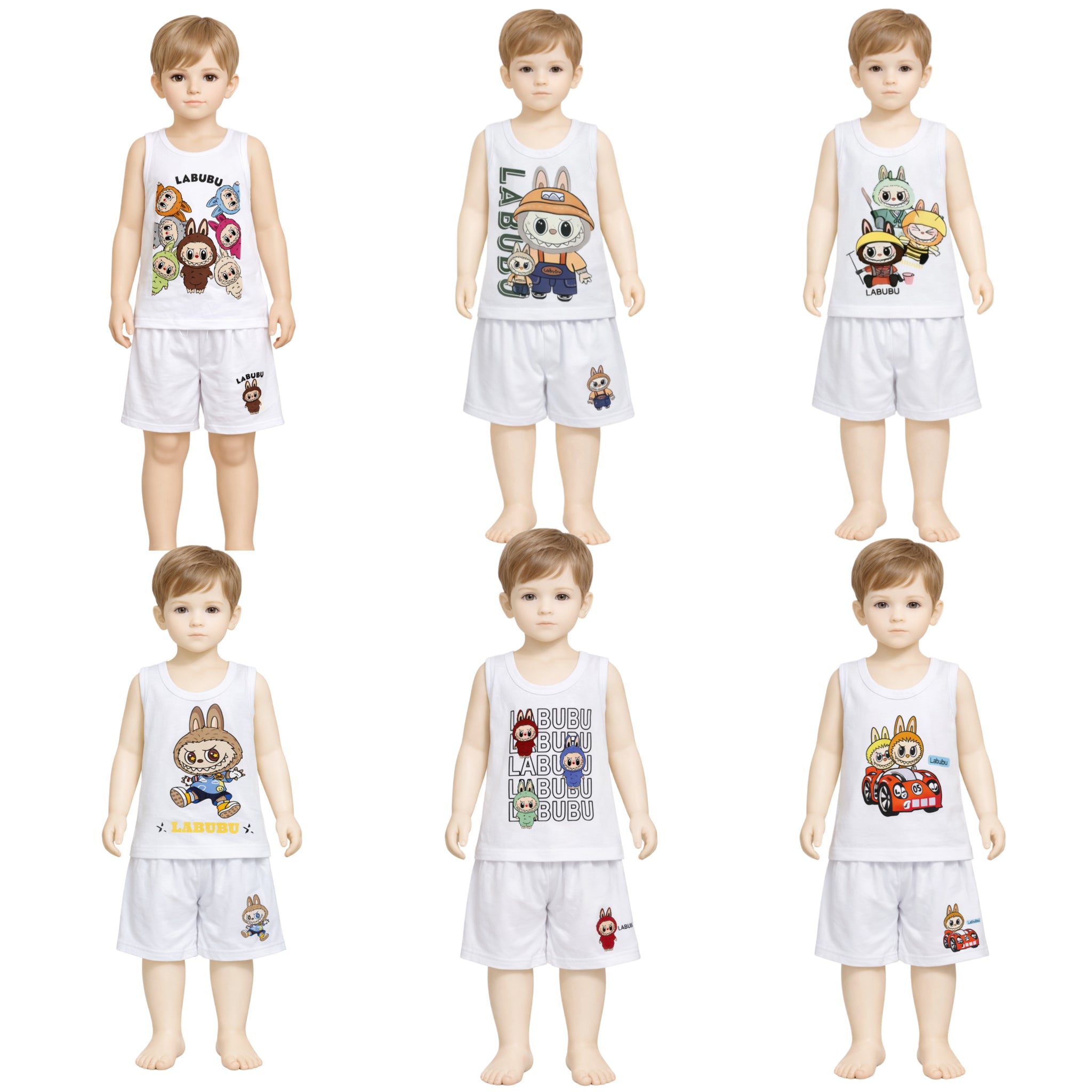 طقم داخلي أولادي قطن 100% (فانيلة + شورت) برسومات لابوبو – بوكس 6 أطقم