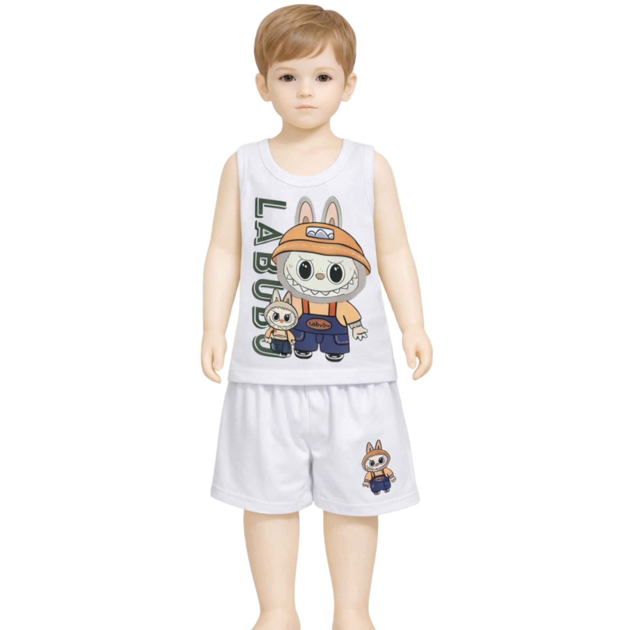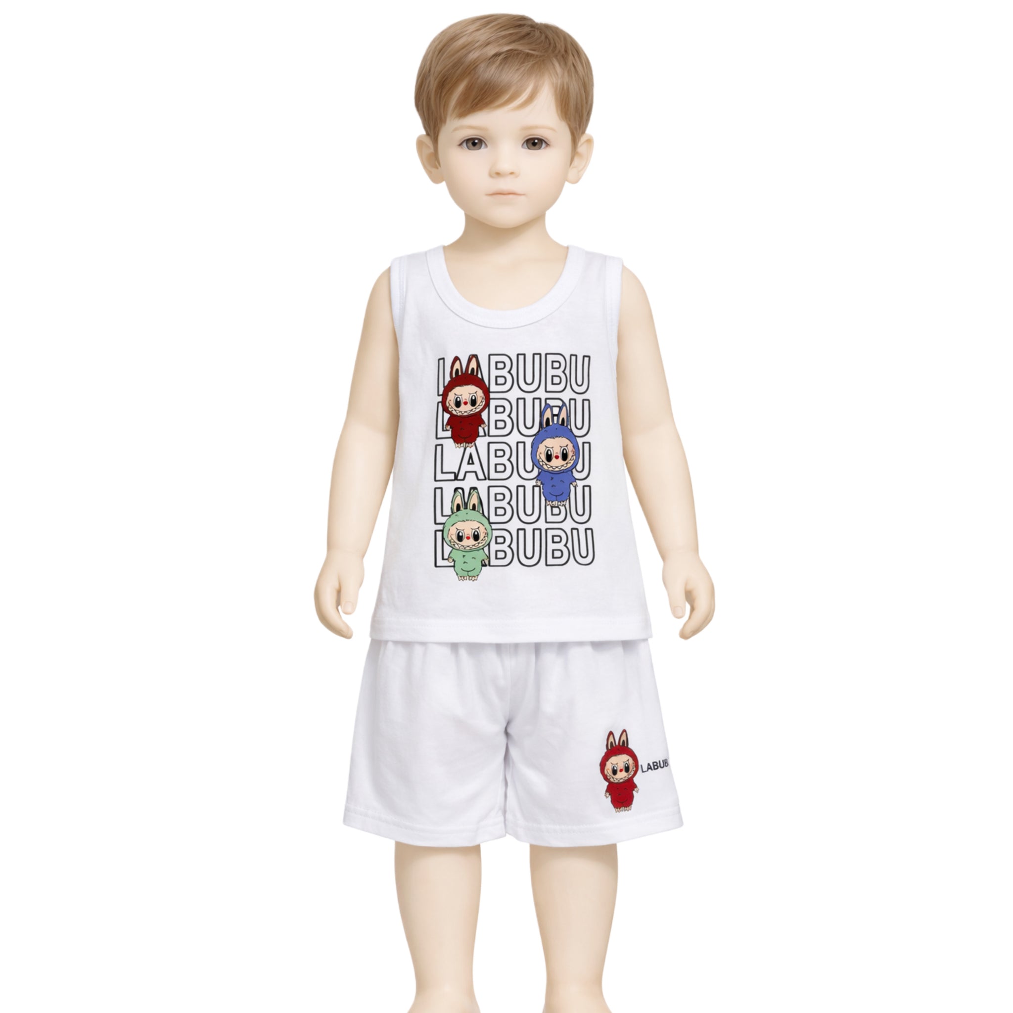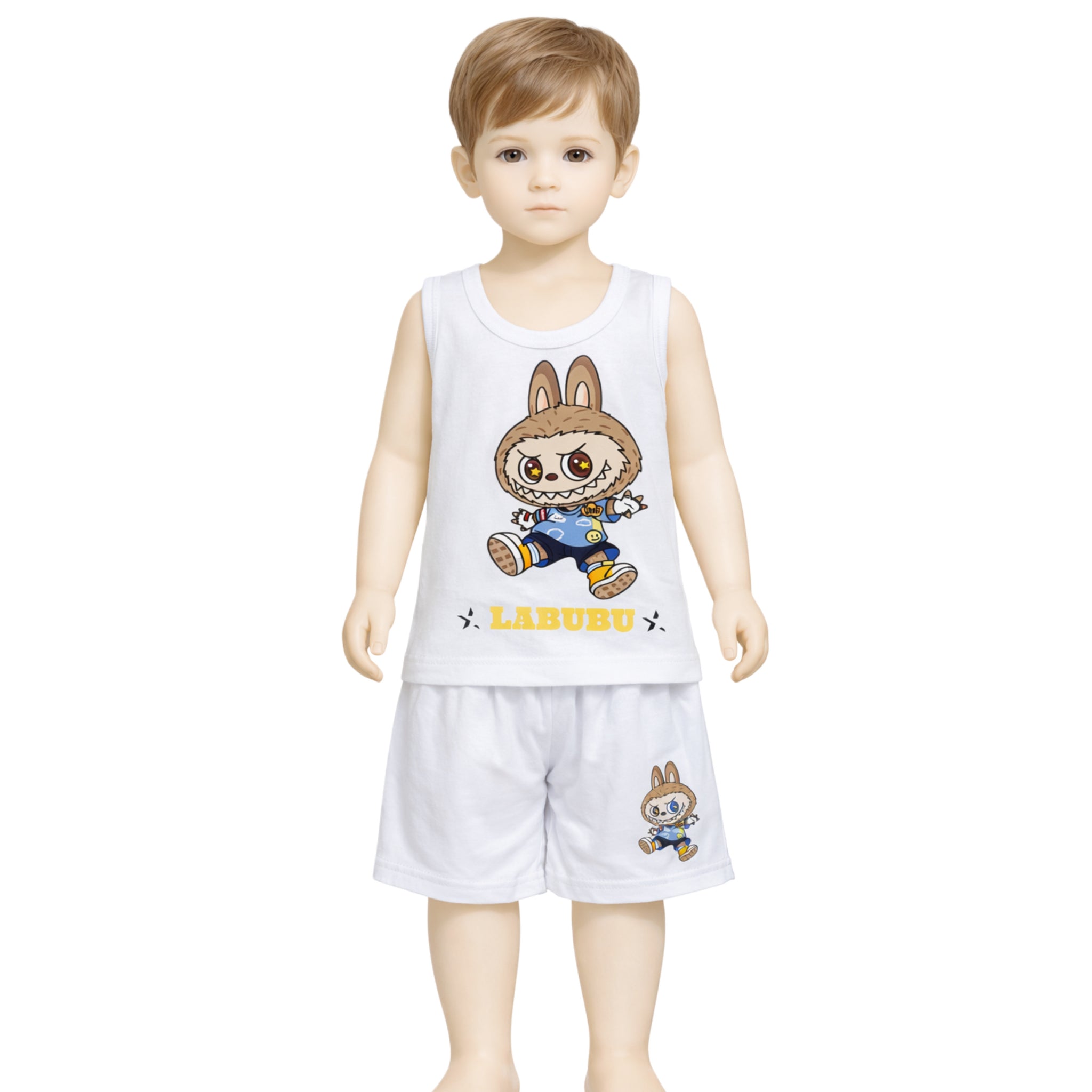 طقم داخلي أولادي قطن 100% (فانيلة + شورت) برسومات لابوبو – بوكس 6 أطقم